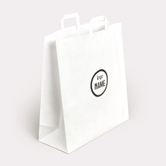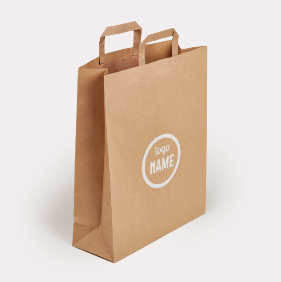 250 papieren tassen met een bedrukking in één kleur aan de voorzijde. Kies uit kraft- of wit papier als basismateriaal voor de tas.